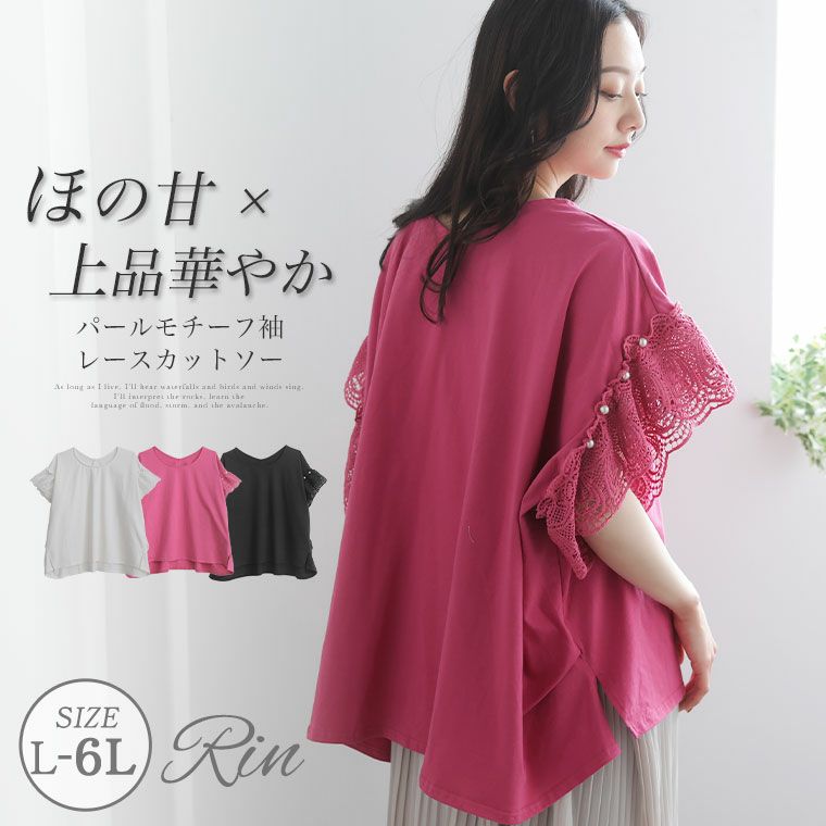 【Rin】パールモチーフ付きレース袖が上品華やか