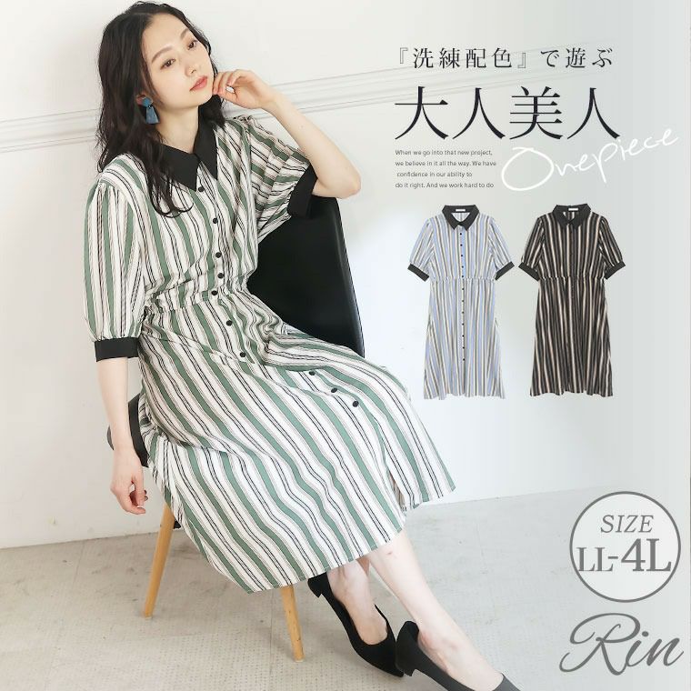 ストライプですっきり魅せ美人なワンピース
