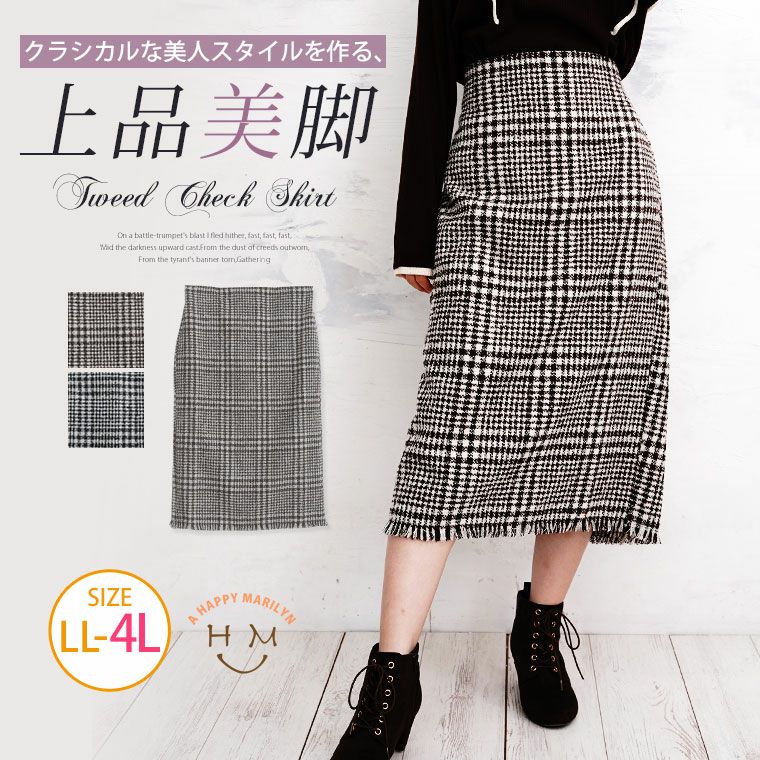 チェックで上品美脚に魅せるタイトスカート