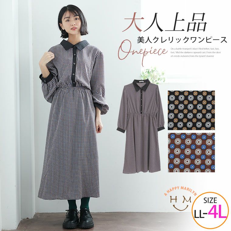 デシン小紋柄プリントでレトロにかわいいワンピース