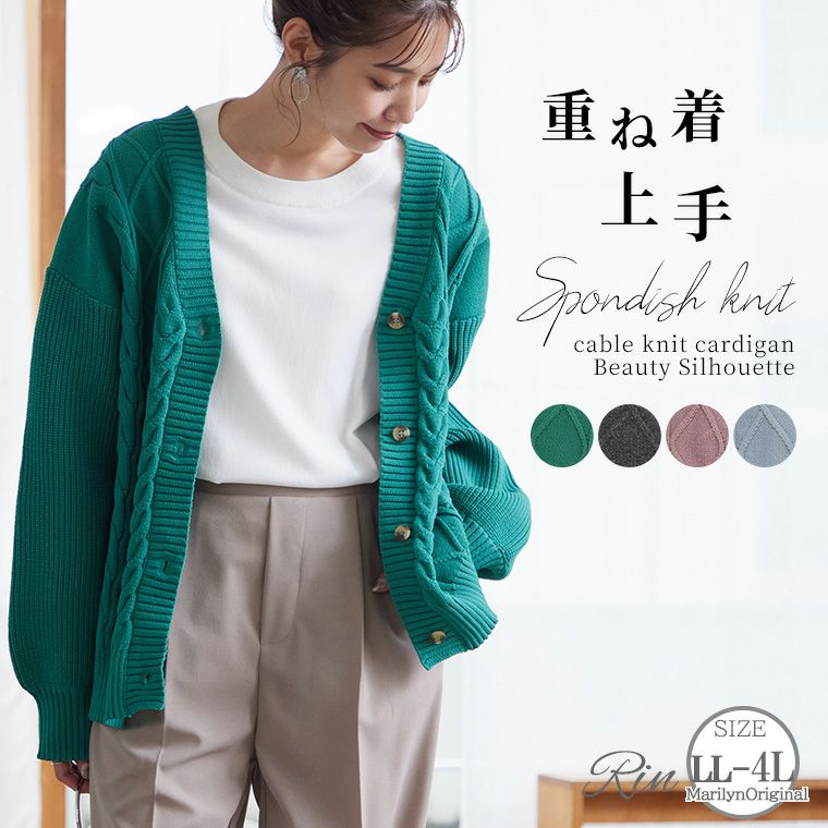スポンディッシュケーブルニットカーデ