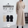 【大人の為のきちんとキレイ服】ネックレス付ストレッチツイル着やせタックワンピース