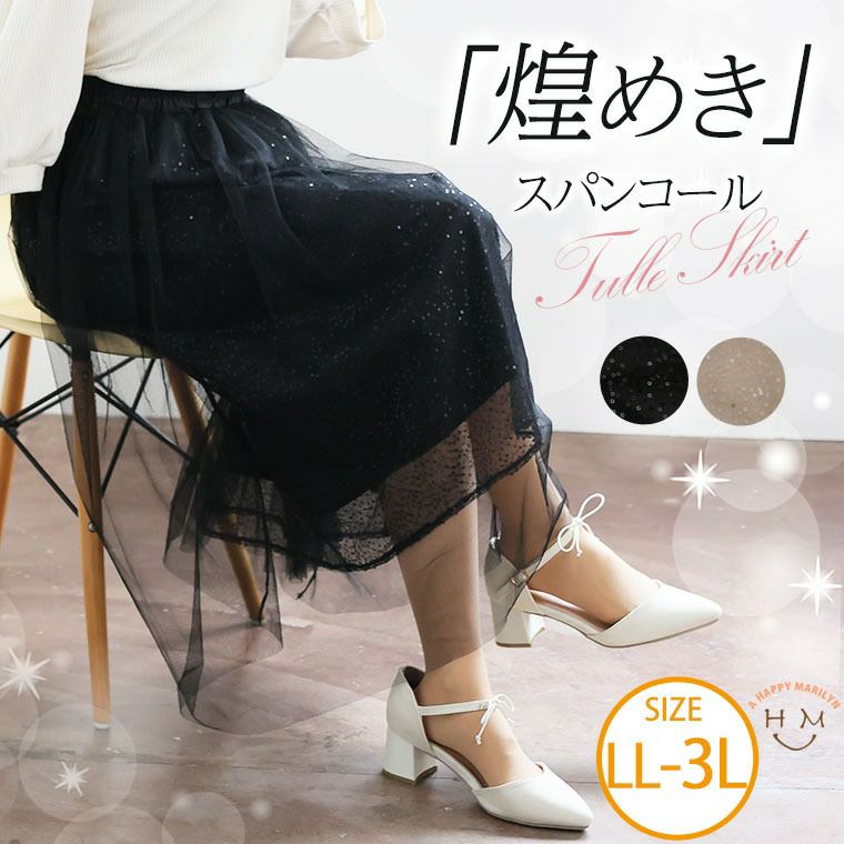 上品に煌めく見惚れスパンコールチュールスカート