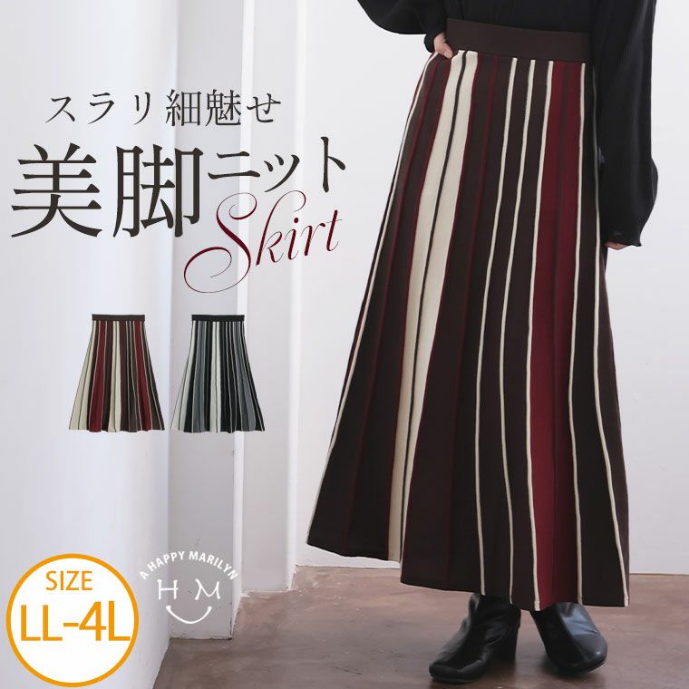 着るだけでお洒落に着映える マルチストライプニットスカート