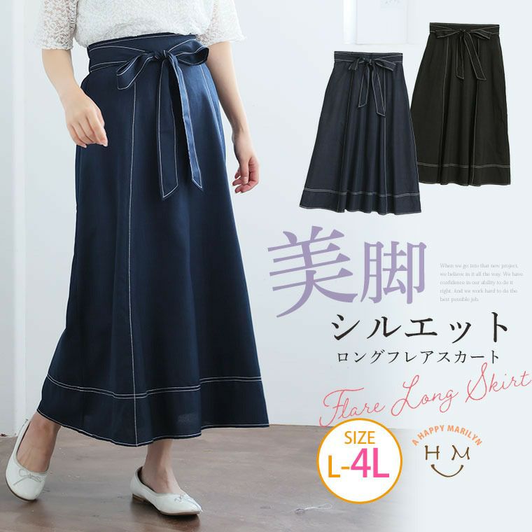 大人のための配色ステッチリボンフレアスカート