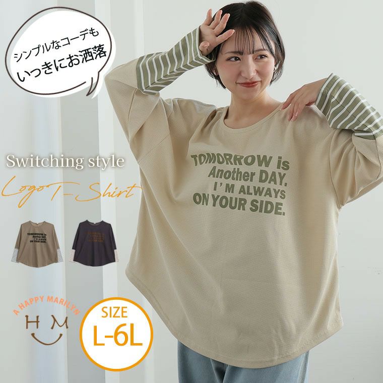 異素材切替デザインがお洒落なロゴプリントロンT
