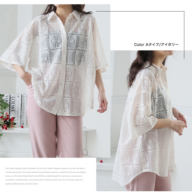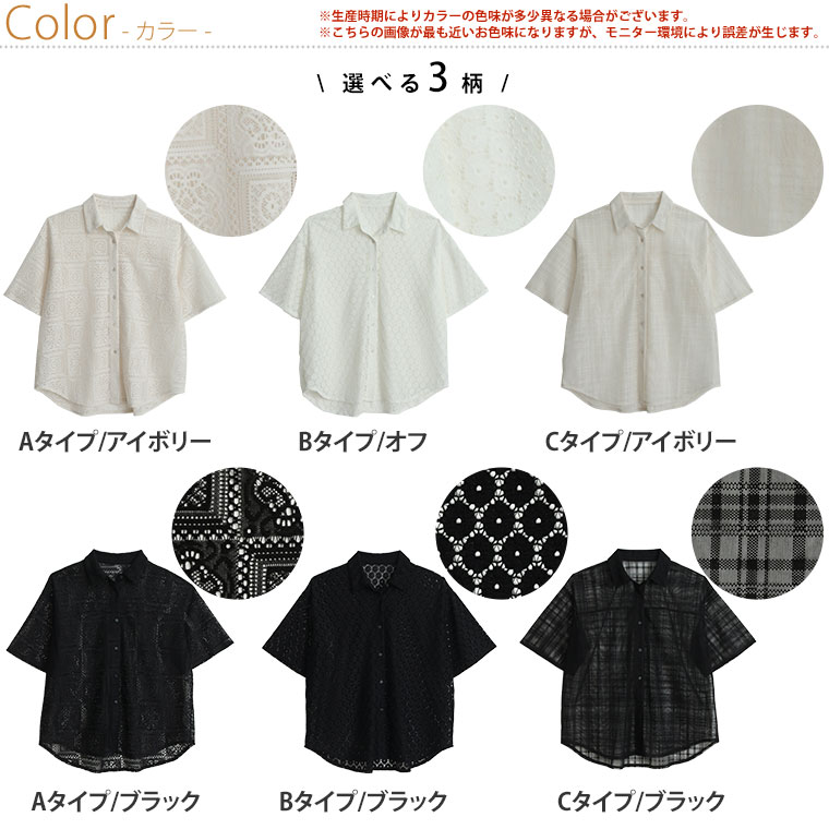 3柄から選べる クロシェレースシャツ