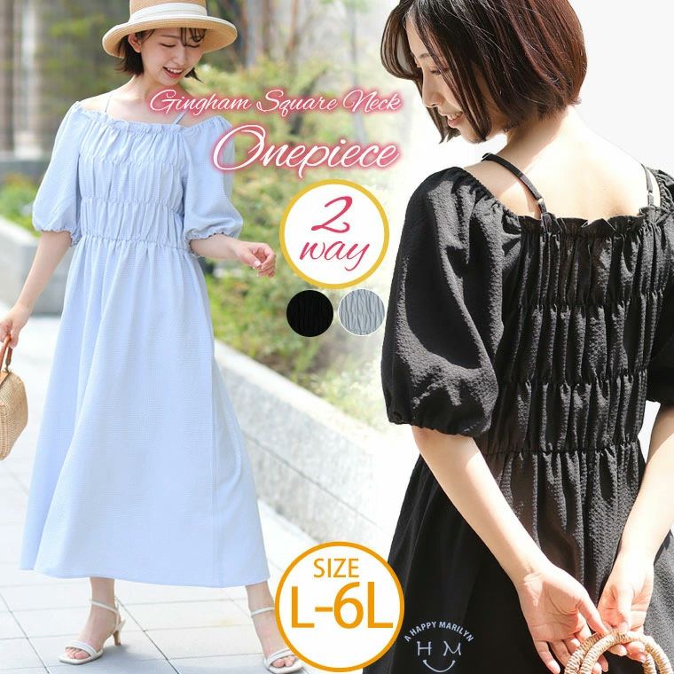 オフショルでも着られる夏らしい2WAYデザイン。好みに合わせてアレンジ自在なワンピース