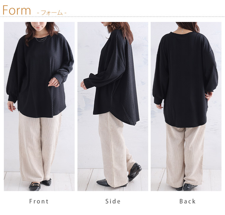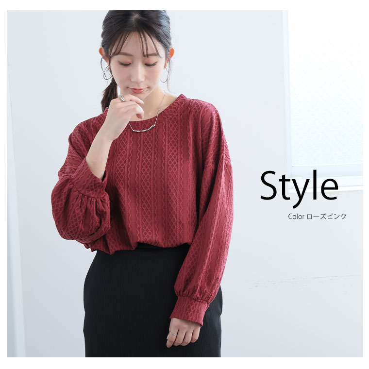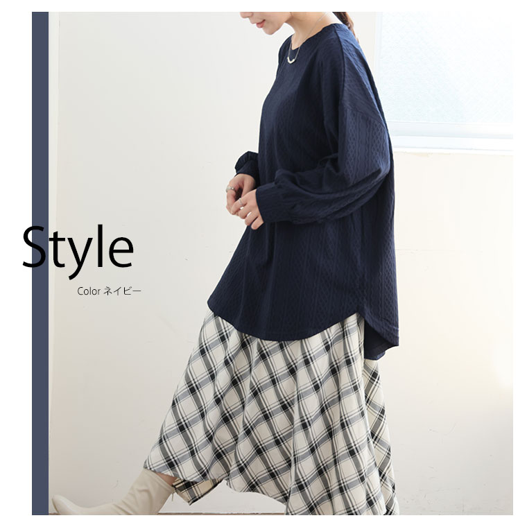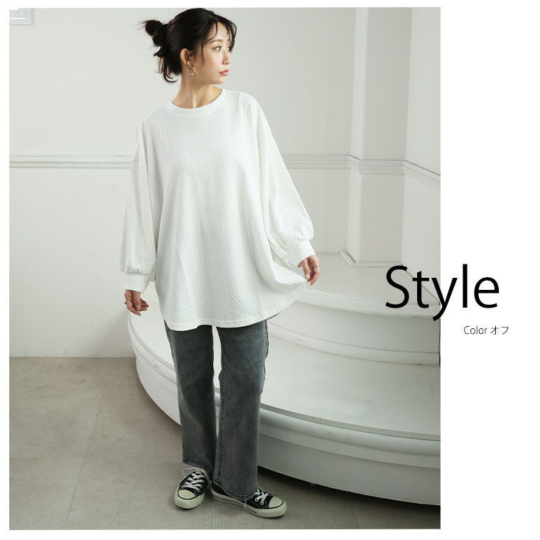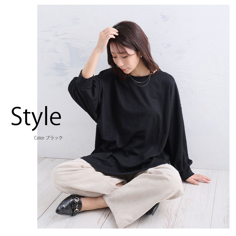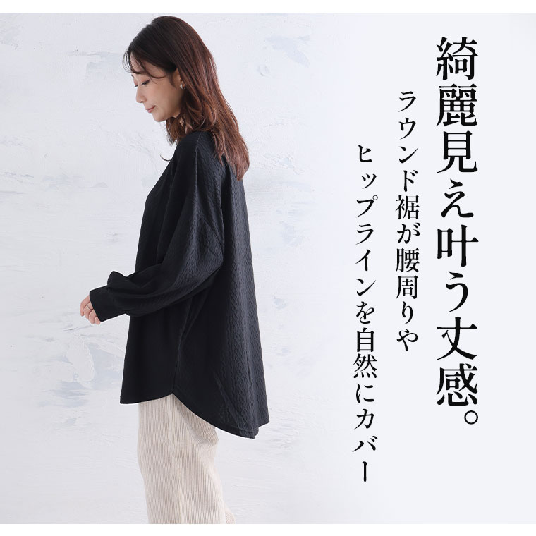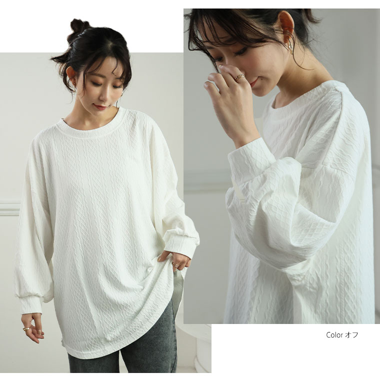 カットソー LL 3L 4L 5L 6L 長袖 秋 秋物 秋服 冬 冬物 冬服 ぽっちゃり ゆったり プラスサイズ お腹 お尻 二の腕カバー ニットとカットのいいとこどり! ケーブルニットソー ぽわん袖 プルオーバー ストレッチ
