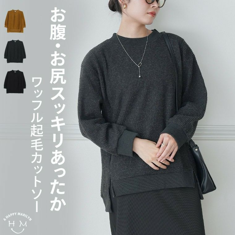 ぽかぽか起毛で暖かい ワッフル モックネック チュニック