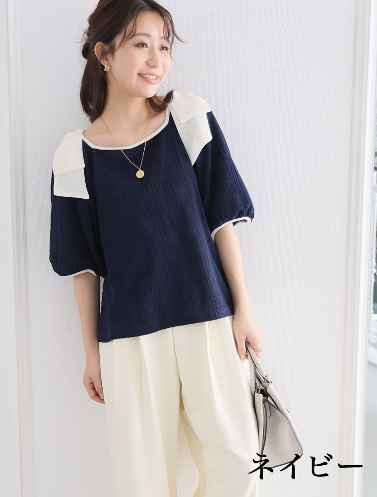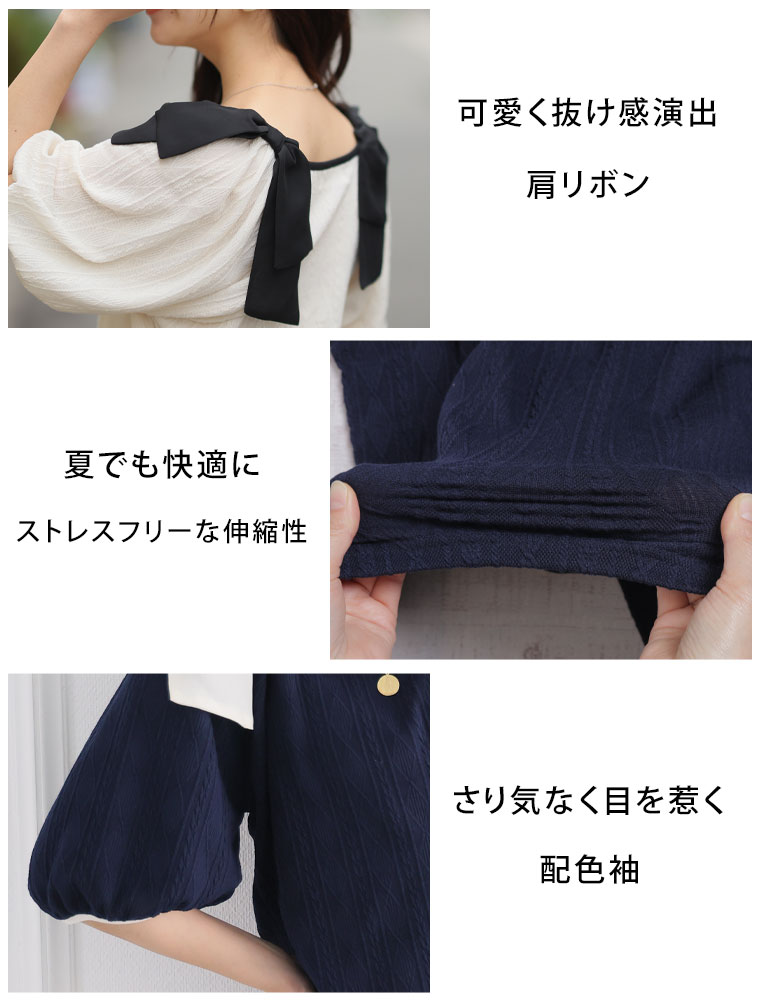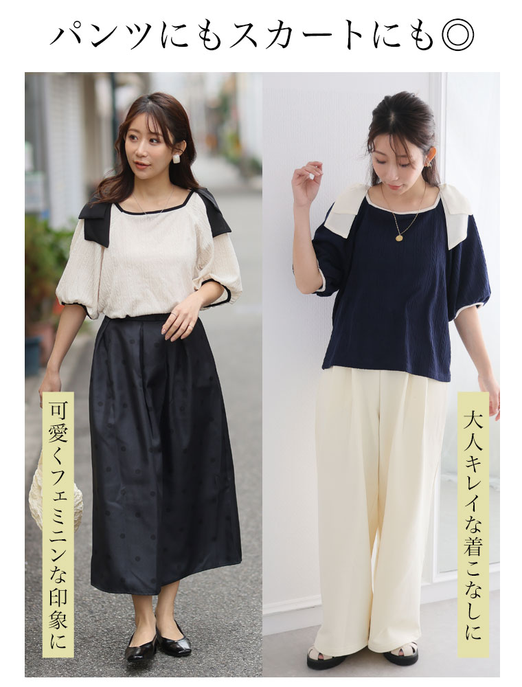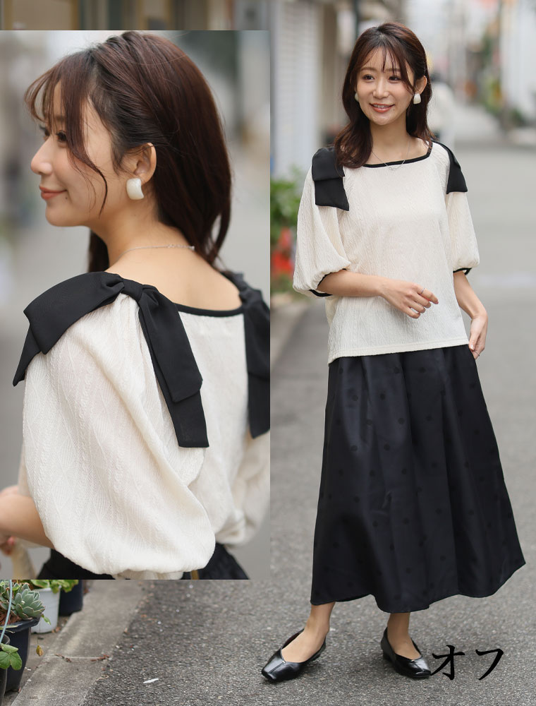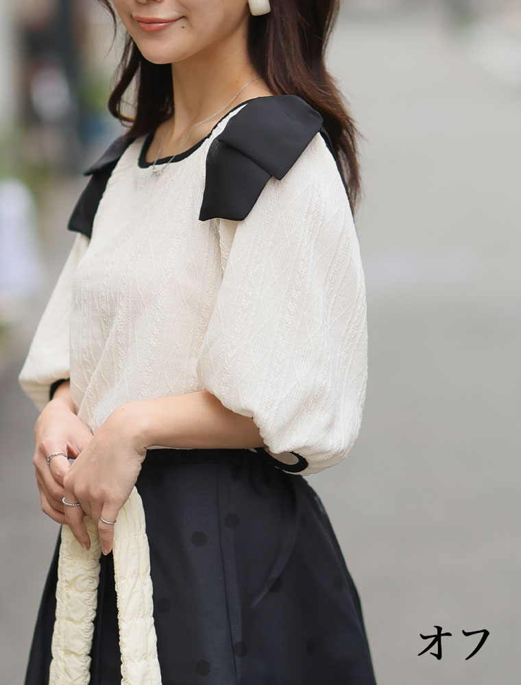 肩リボントップス