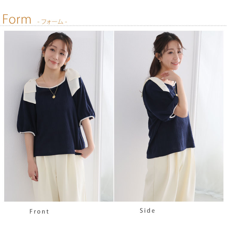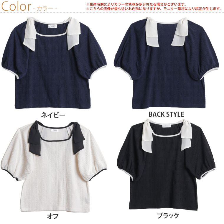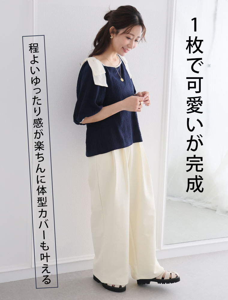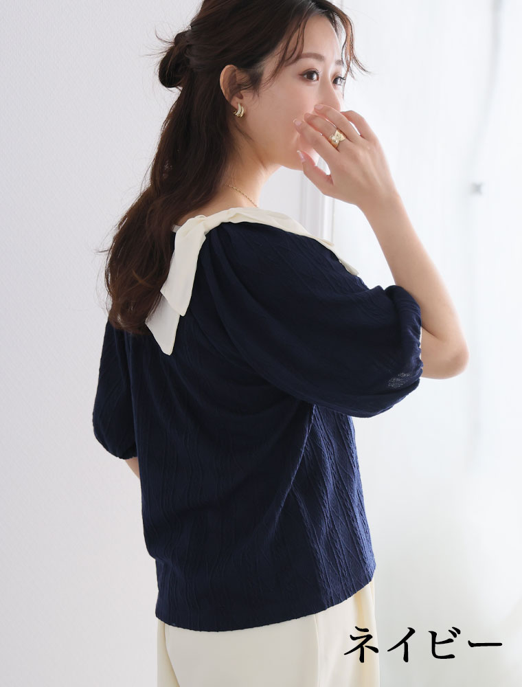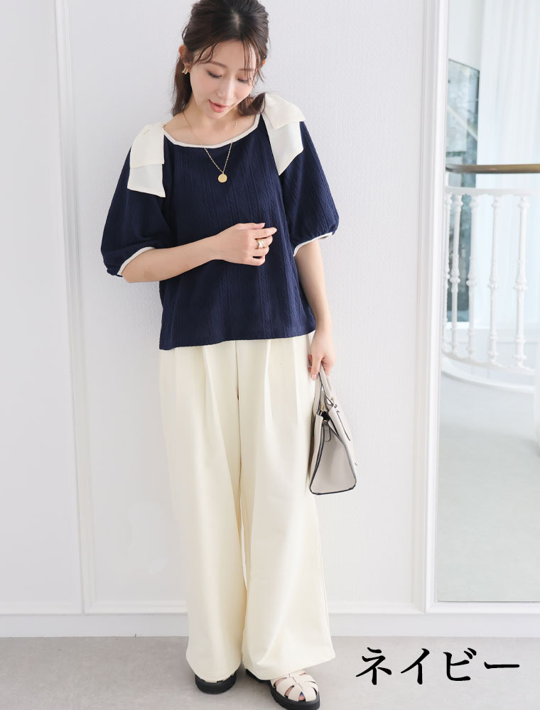 肩リボントップス