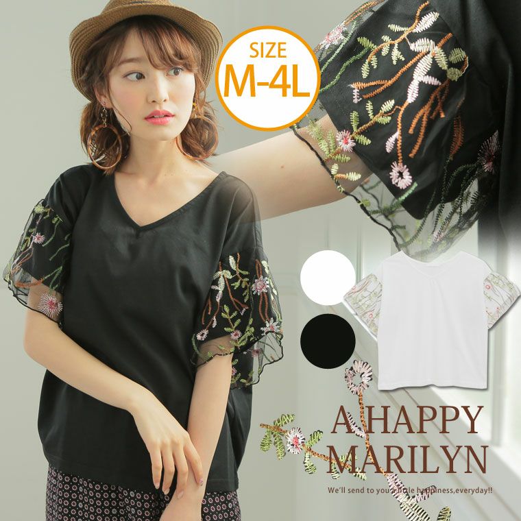 昇り刺繍が華やかなアクセント。チュール袖ブラウス