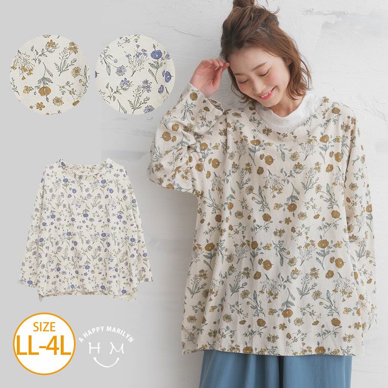 女性らしい花柄プリントが可愛い1枚!!Aラインで体型を拾わずゆるっと着られるのも嬉しいポイント♪