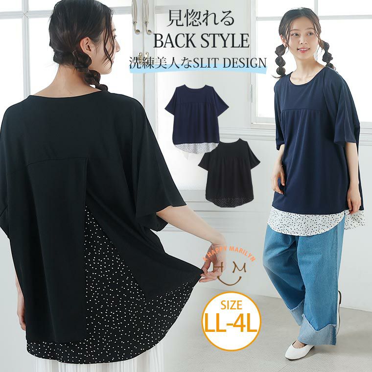 5. 大きいサイズ バックスリット プリント 切替 トップス | 大きいサイズの通販ならハッピーマリリン