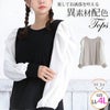 シャツ袖ドッキングとリブカットソーでトレンドスタイル