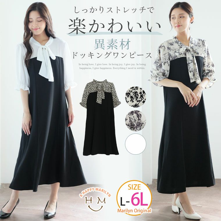 しっかりストレッチで楽かわ! 異素材 ドッキングワンピース
