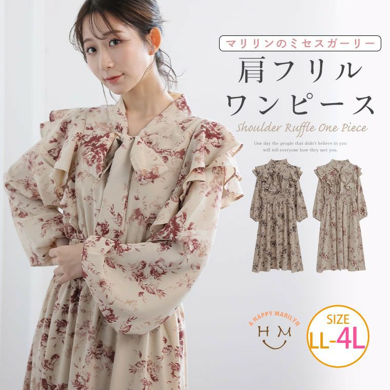 ミセスガーリー 肩フリルワンピース