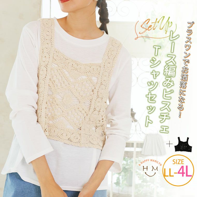 一枚でお洒落が完成!レース編みビスチェ&Tシャツセット