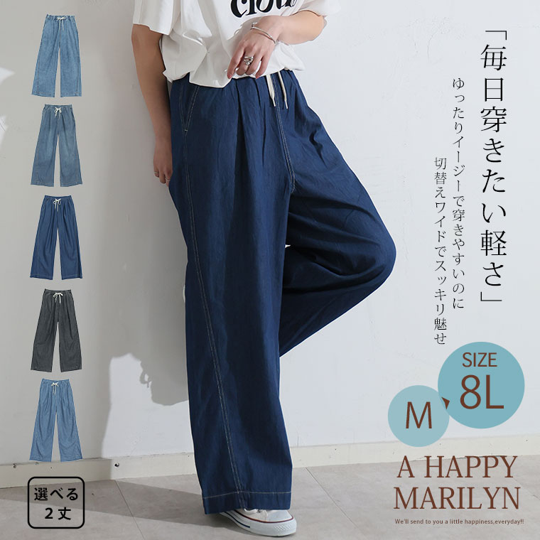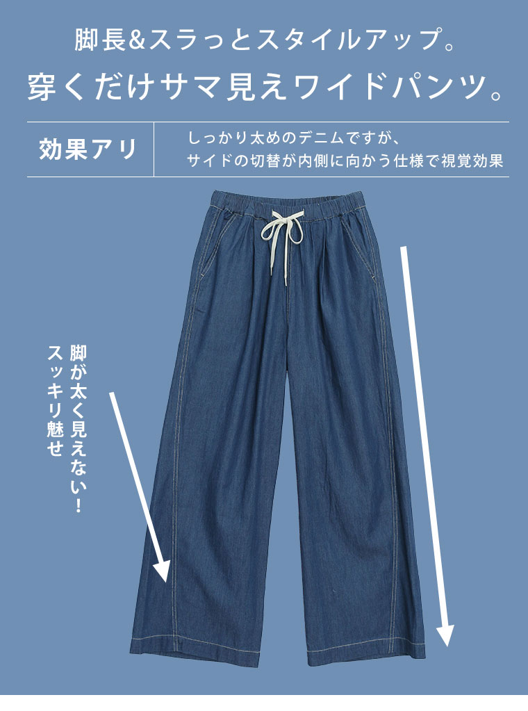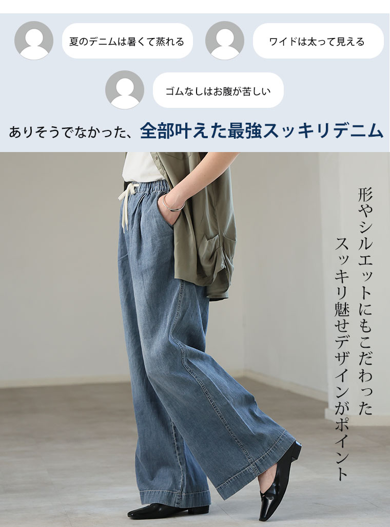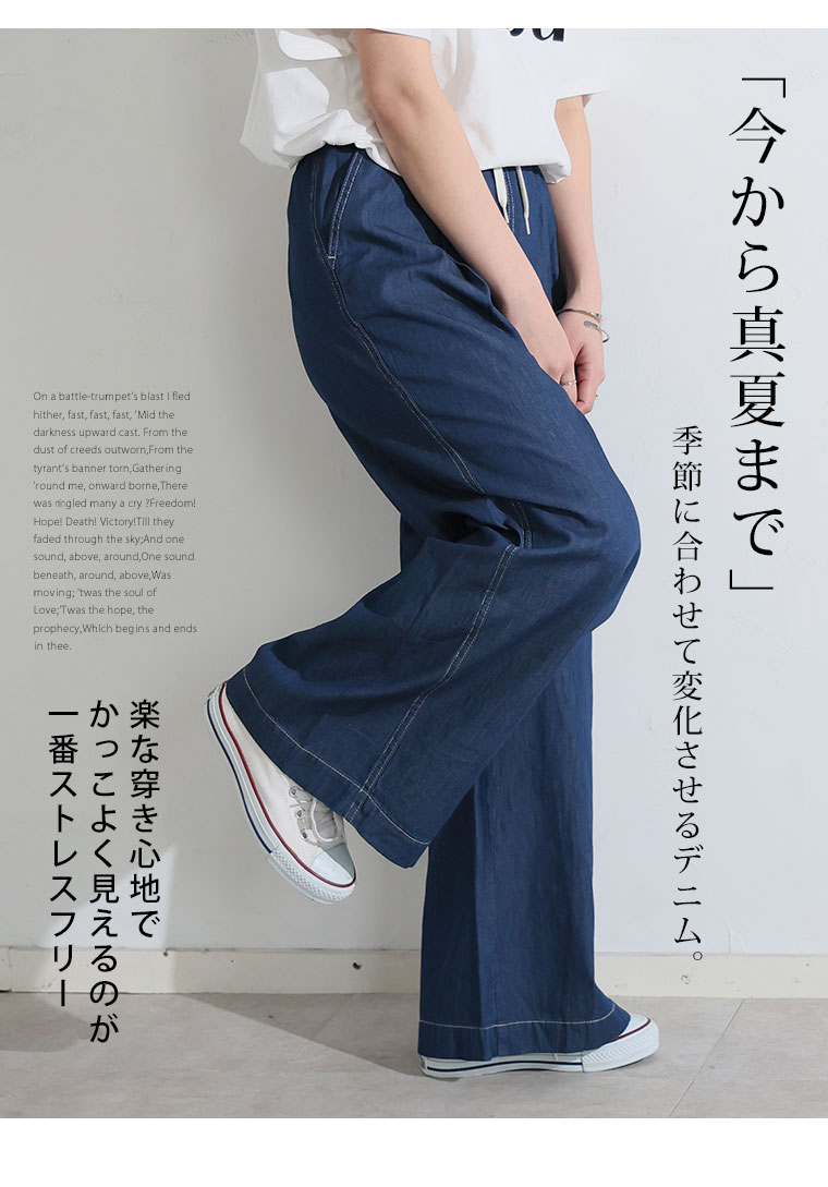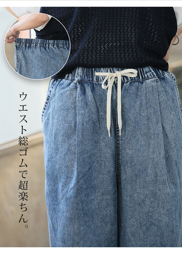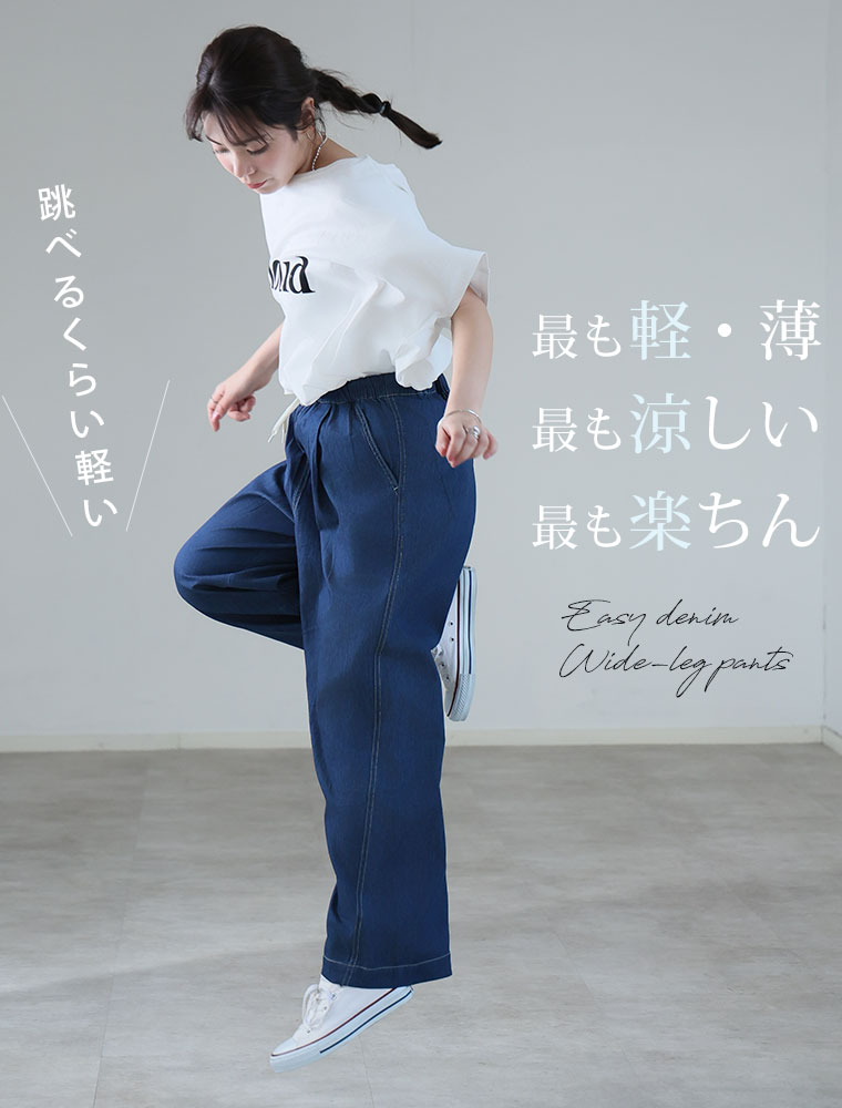 最強快適ワイドデニムイージーデニムパンツ