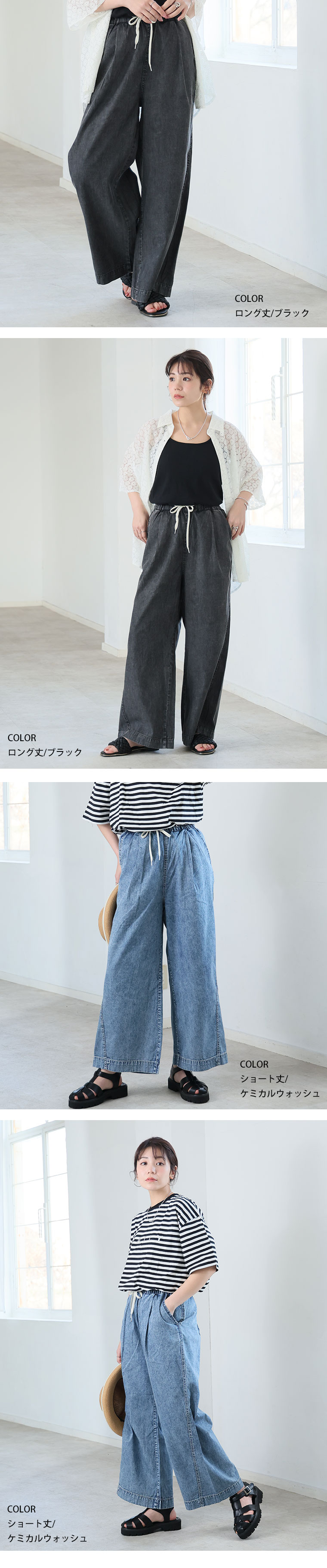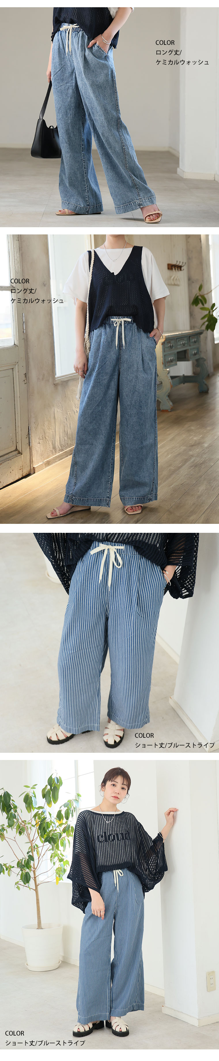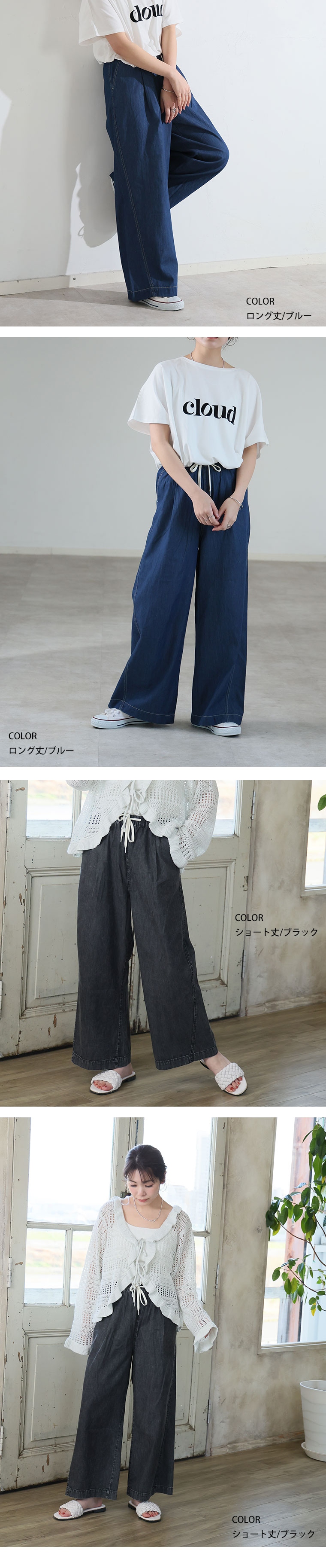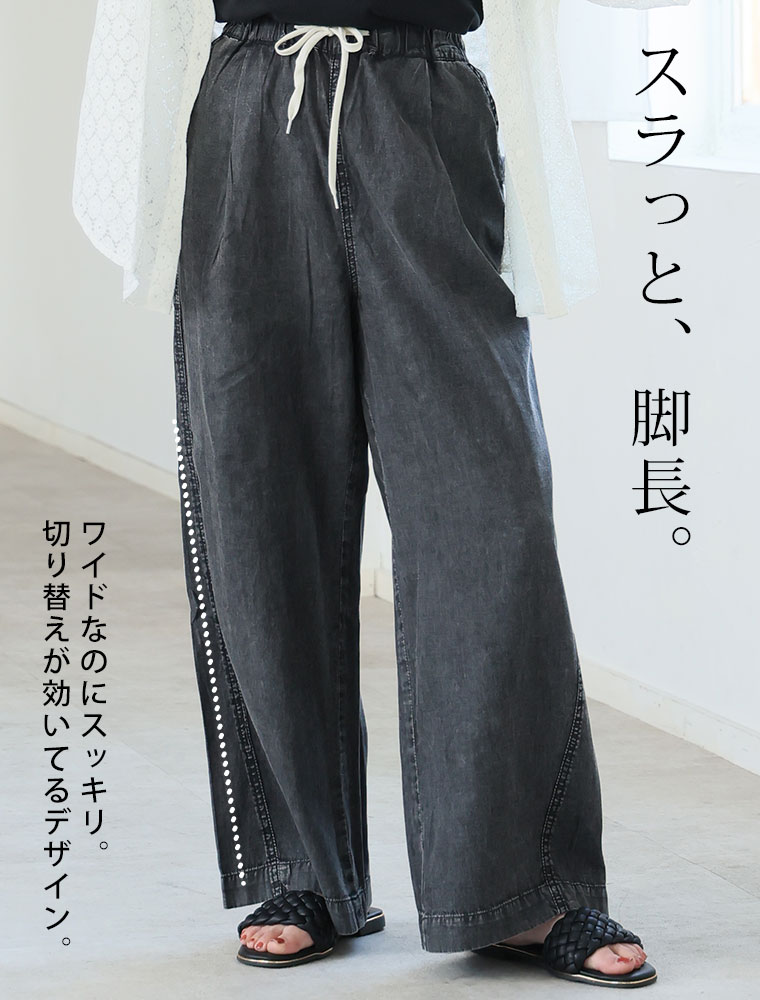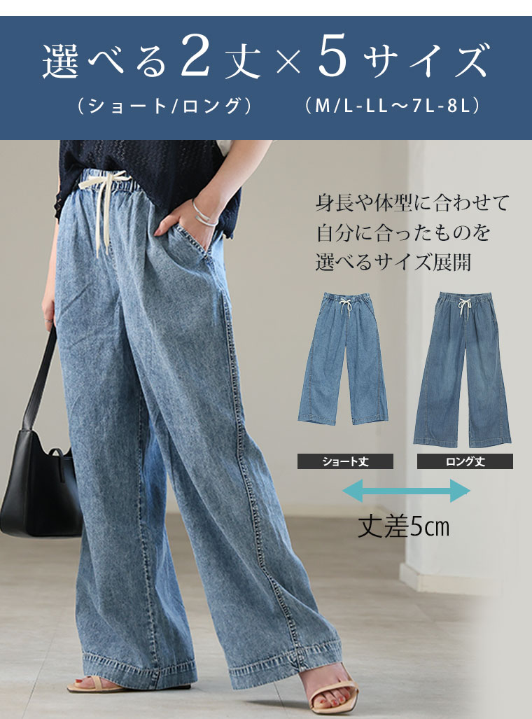 最強快適ワイドデニムイージーデニムパンツ