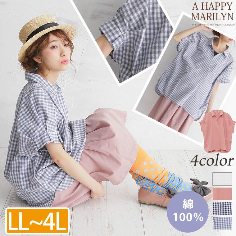 無地・ギンガムから選べる。スキッパー半袖シャツ
