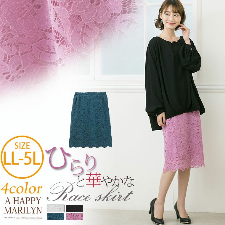 上品でエレガントな雰囲気の花柄レーススカラップ膝下丈タイトスカート