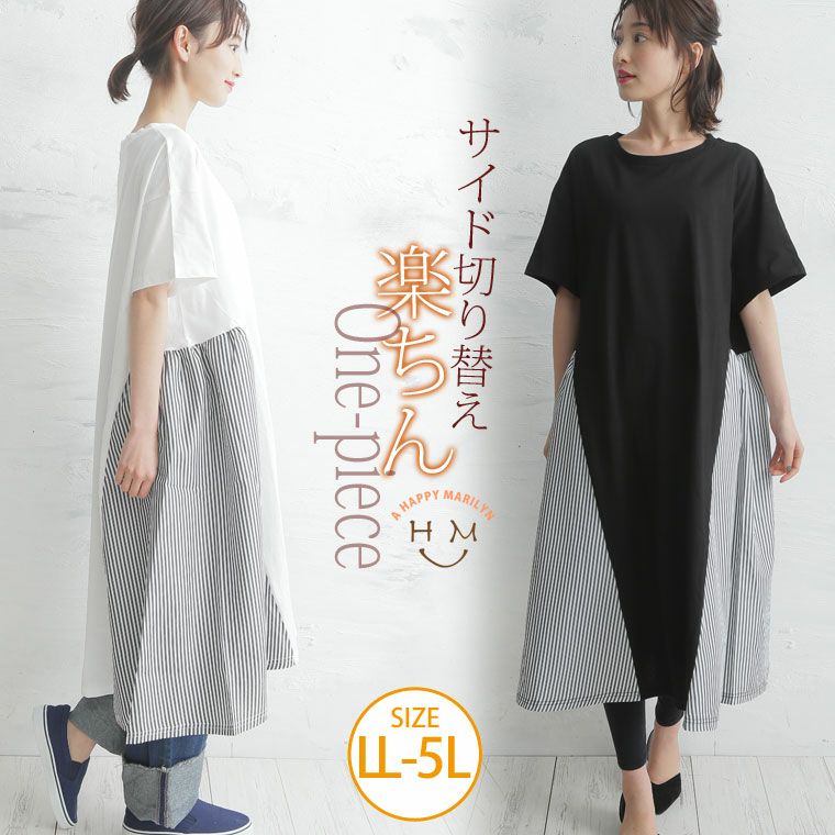 異素材切替え サイドストライプワンピース