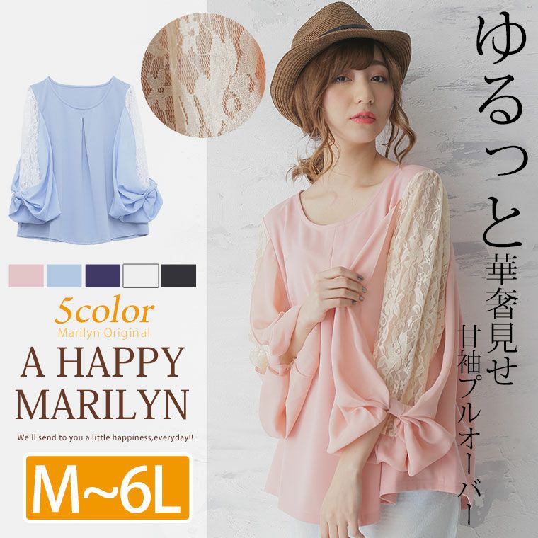 レースの切り替えとリボンで甘さをプラスした。 袖レース切替長袖ブラウス