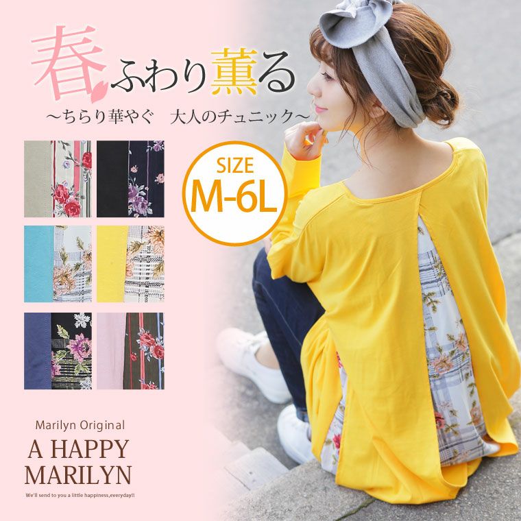 ちらりと覗く柄デザインが女性らしいアクセントをプラス。体型カバーを考えた1枚
