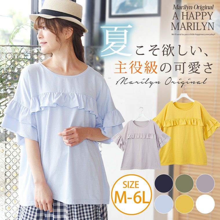 ふんわりフレア袖が二の腕を可愛くカバー♪前後のフリルが華やかなトップスです