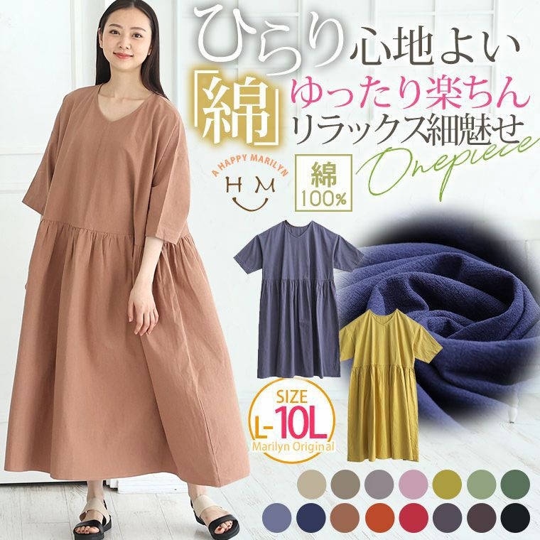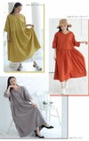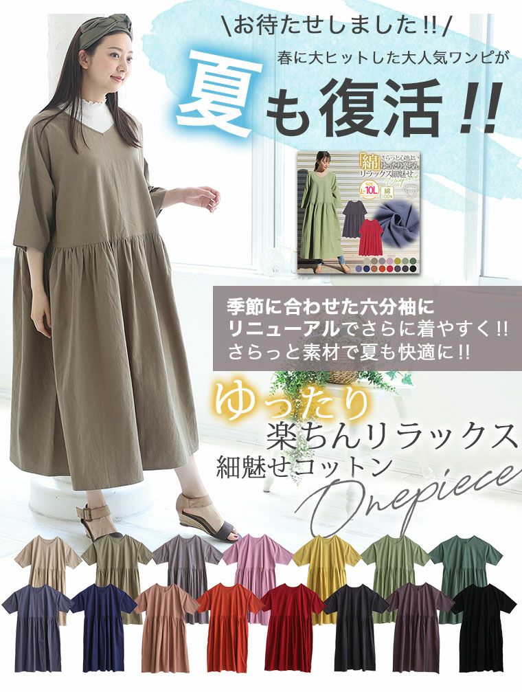 綿100%さらりと心地良いゆったり楽ちんリラックス細魅せコットンワンピ