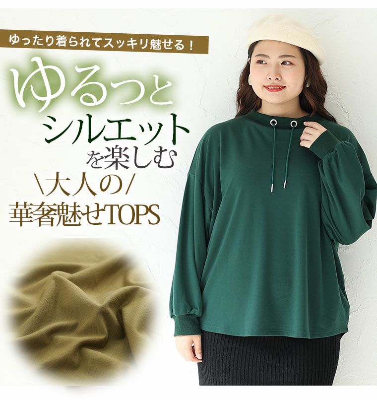 上品に小顔魅せを堪能するネック。柔らかリッブでスッキリ楽ちん