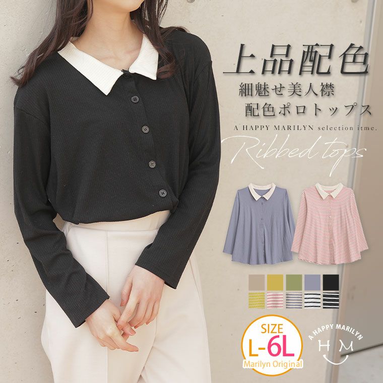 無地とボーダー2Typeから選べる 華奢魅せリブトップス