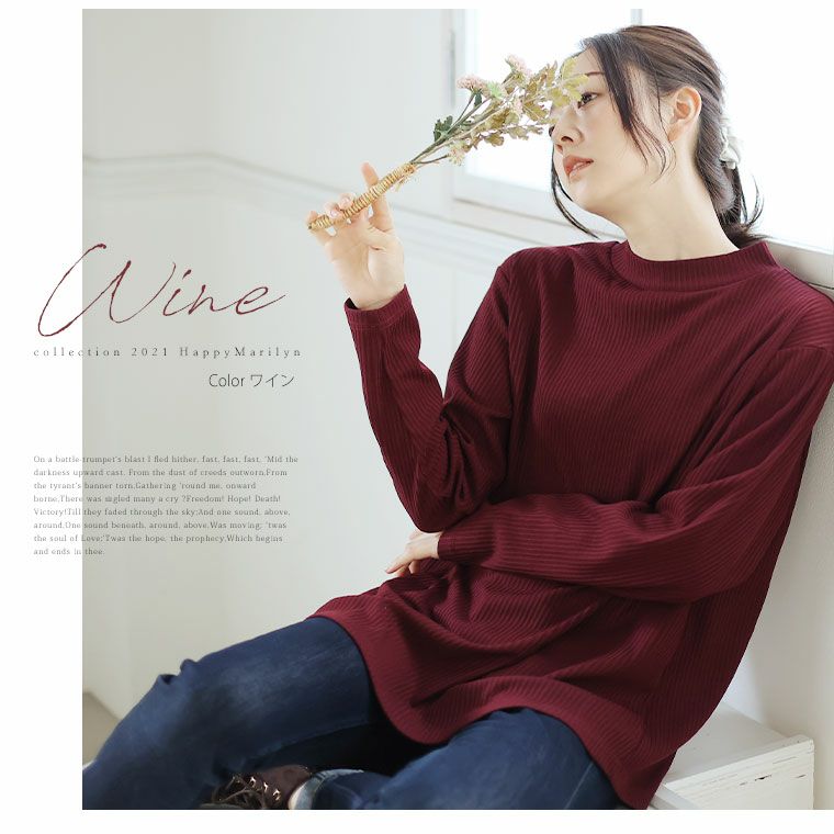 あったか裏起毛 もっちり素材のリブTOPS