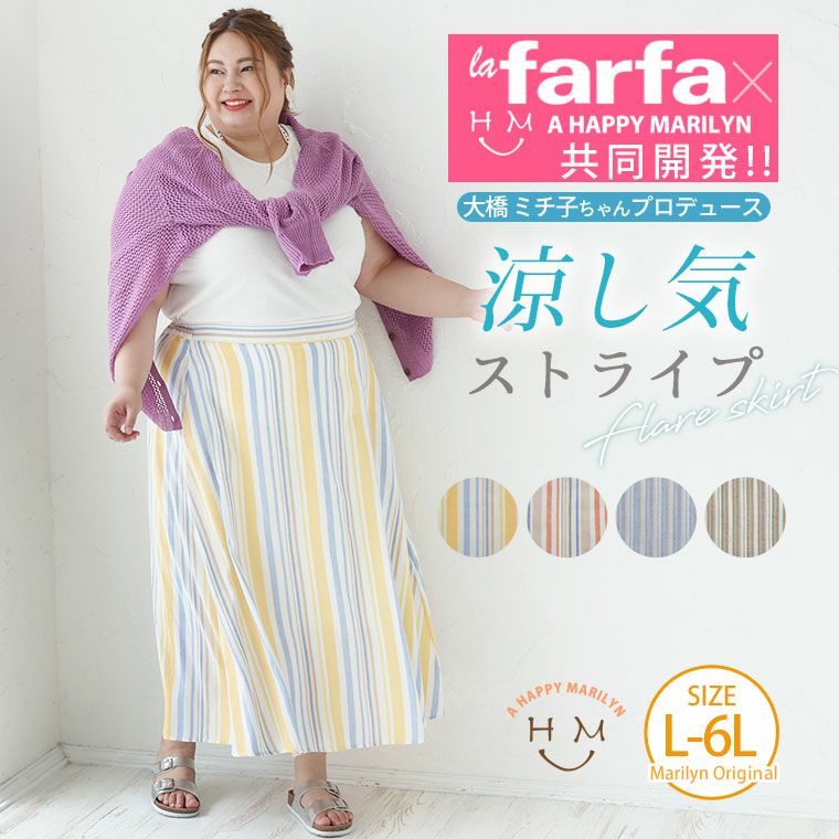 lafarfaモデルプロデュースの涼し気なストライプフレアスカート