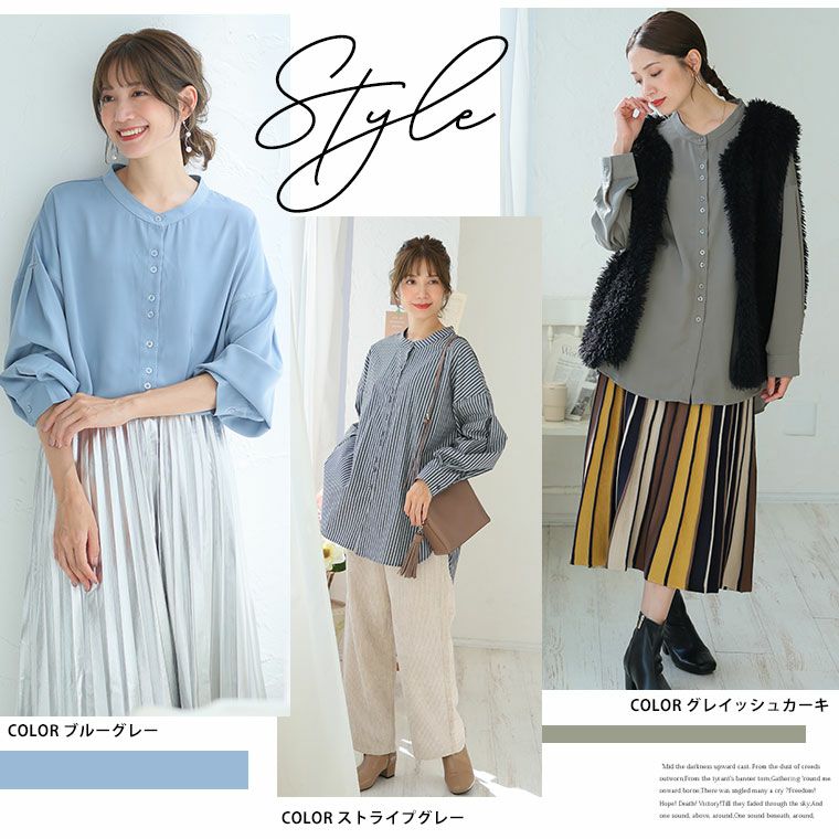 ストライプと無地から選べる!ボタンがお洒落なバンドカラーシャツ