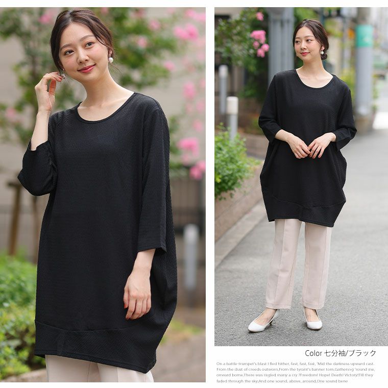 七分袖と長袖から選べる!ぽこぽこふくれジャガードコクーンチュニック