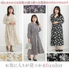 SNSで大人気!Hinaさんコラボ 花柄切替 ギャザーワンピース