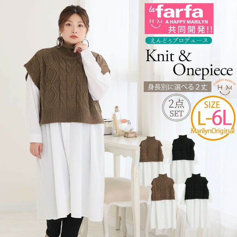 【ラファモプロデュース】 着丈が選べる ニットベスト×Aラインシャツワンピース