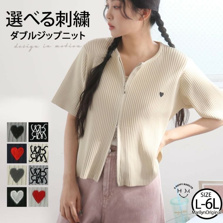 細かいリブ素材と体に張り付きすぎないサイズ感にWジップとワンポイントのハートが目を惹く