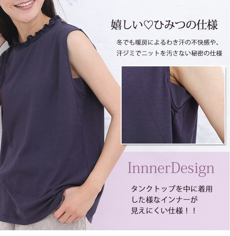 タンクトップを中に着用した様なインナーが見えにくい仕様のプルオーバー。重ね着しやすいのが嬉しい