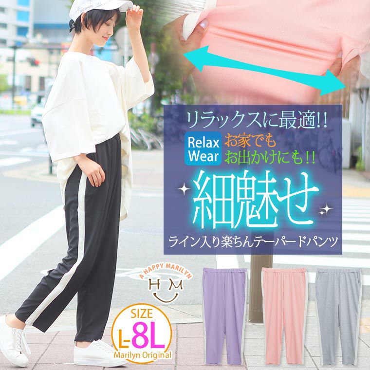 家でも外でも使える!リラックスに細見せ楽ちんライン入りテーパードパンツ