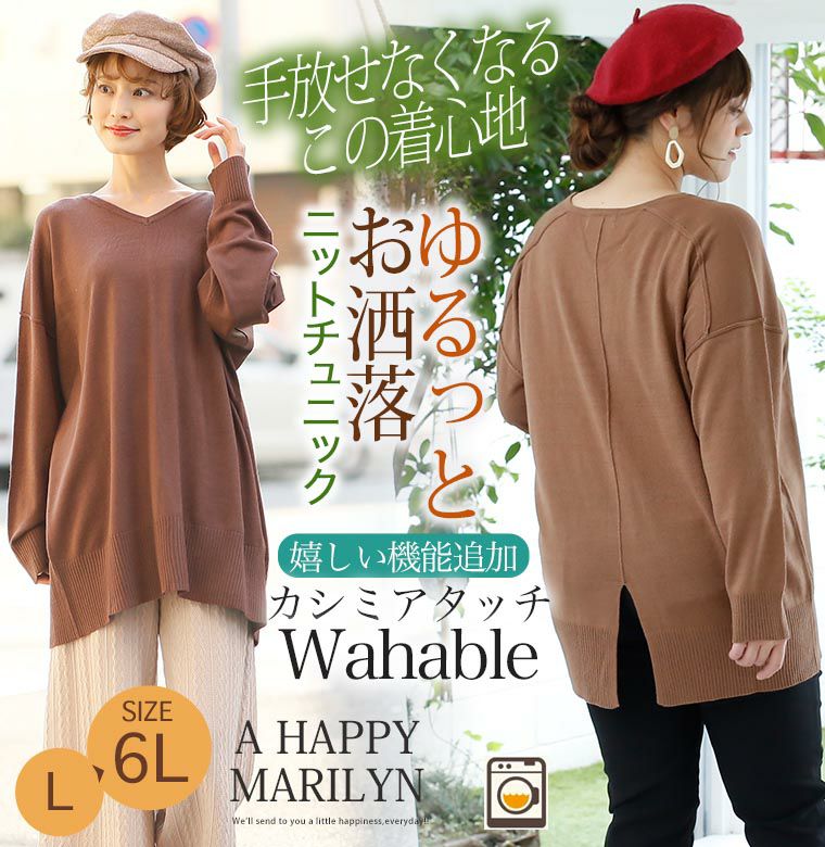 ゆるっとお洒落に着れる!お家で洗えるカシミアタッチのニットチュニック