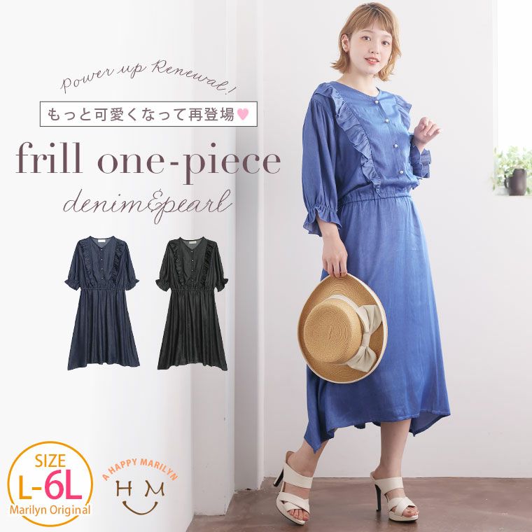 フリルが甘かわいい!やわとろデニム調ワンピース
