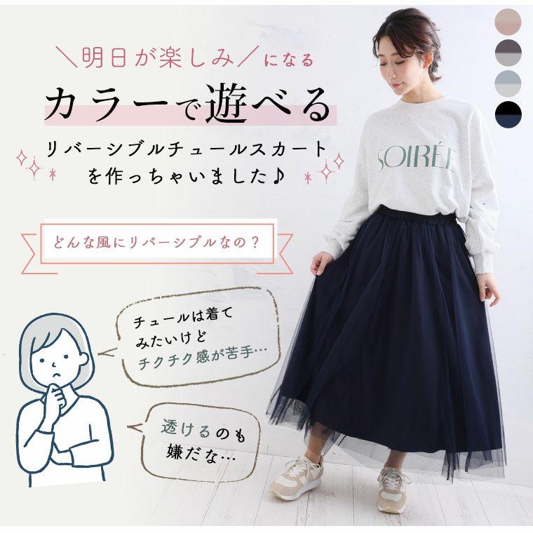 立体体型カバー「カラーで楽しむ」リバーシブル チュールスカート
