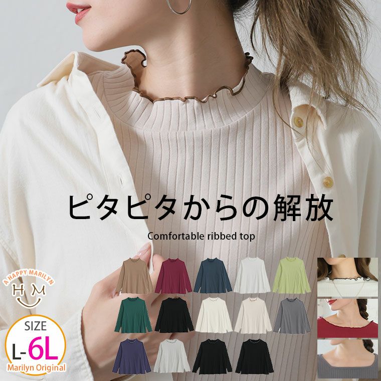 フィットしすぎない、心地良さ 柔らかく、窮屈感なし!チクチクしない、選べる綿混リブトップス