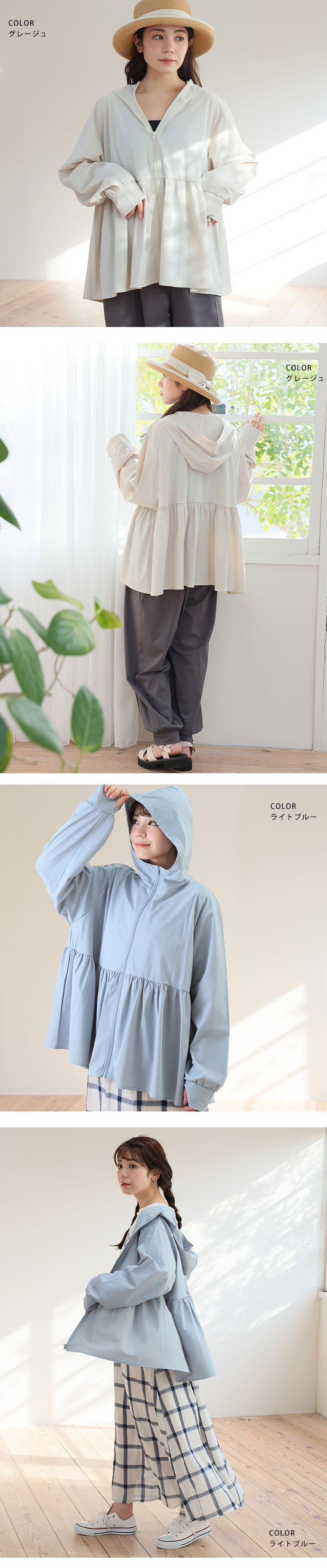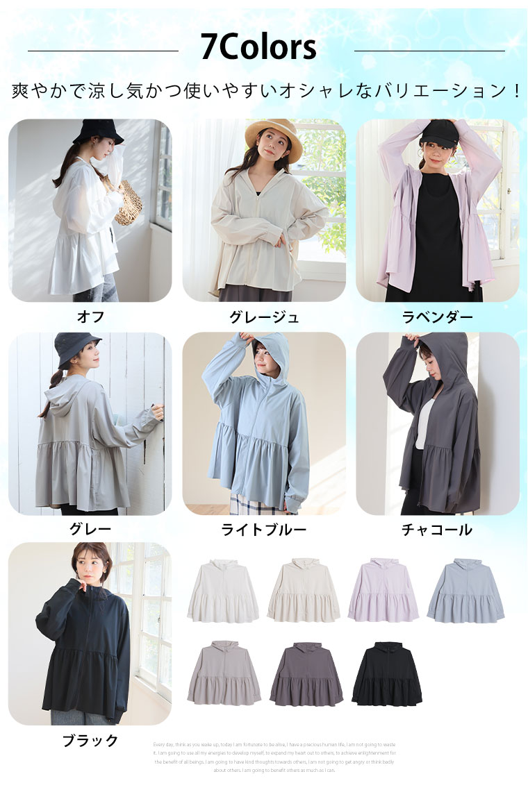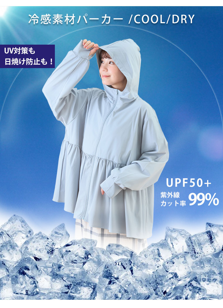 トップス ライトアウター ラッシュガード LL 3L 4L 5L 6L 長袖 夏 夏物 夏服 夏用 ぽっちゃり ゆったり プラスサイズ カジュアル 【新作◆4月4日販売】 <瞬寒! アイスヴェールシリーズ> ティアード パーカー | 大きいサイズの通販ならハッピーマリリン