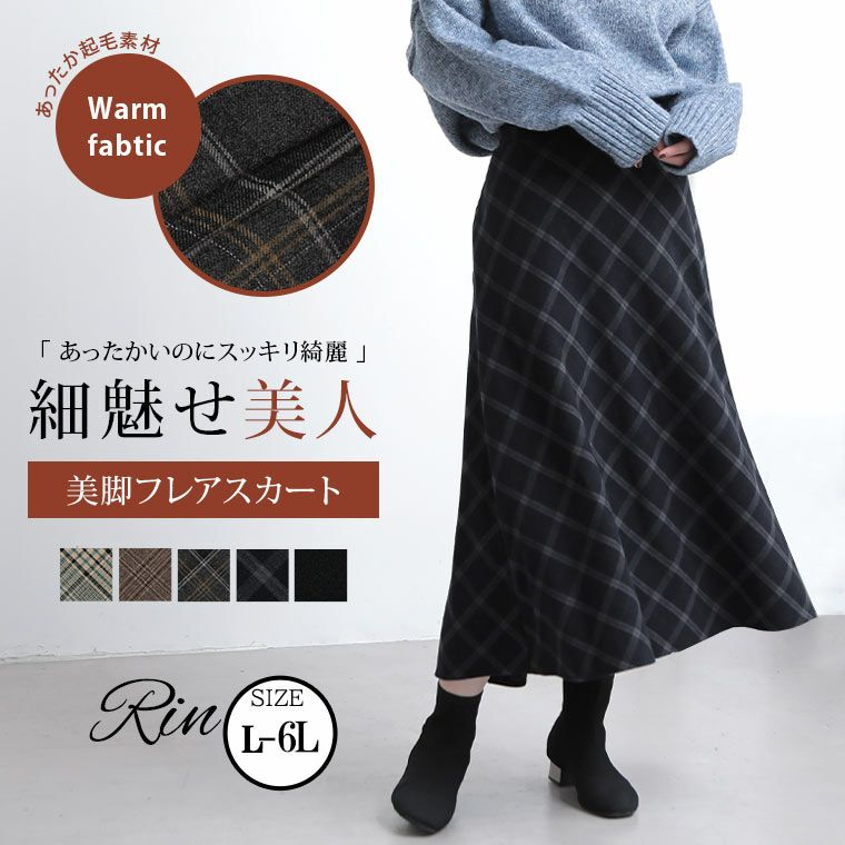 チェックと無地から選べる!ストレッチ生地で楽々フレアスカート