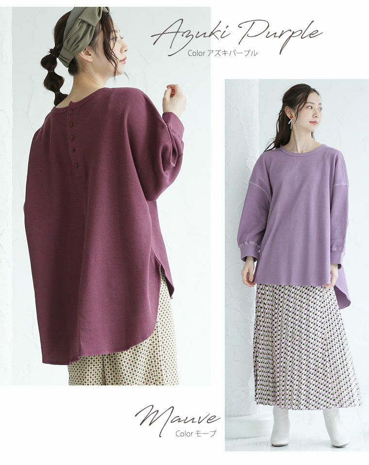 ぽっちゃりさんに嬉しい!柔らかさらりバックボタンワッフルトップス